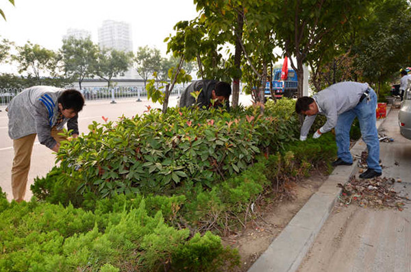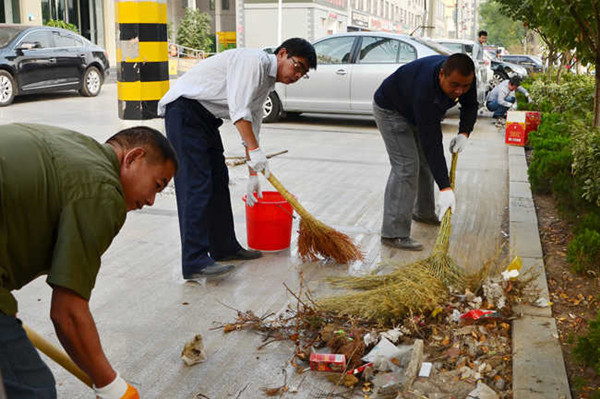| 為確保我市迎接省級(jí)衛(wèi)生城市復(fù)審工作順利進(jìn)行,10月8日,公司15余名干部職工在陶然大酒店至新博偉店集中開展衛(wèi)生大掃除活動(dòng)。  大家一到現(xiàn)場,立即進(jìn)入勞動(dòng)狀態(tài),有的手持掃帚清掃路面;有的用夾子撿拾道路兩旁綠化帶內(nèi)的紙屑、塑料袋、磚頭瓦塊、斷枝枯木;有的提著水桶用刷子清理地面墻面、宣傳欄、電線桿、果皮箱、道路標(biāo)示牌、公交站點(diǎn)和各類建筑物、構(gòu)筑物、門面卷閘門等處張貼、噴涂的非法小廣告、“野廣告”;……現(xiàn)場一派熱火朝天的勞動(dòng)場面。同時(shí),大家還指導(dǎo)商業(yè)門面經(jīng)營業(yè)主做好“門前三包”,杜絕環(huán)境衛(wèi)生臟亂差情況反彈。不多時(shí),每人額頭上都沁出了細(xì)密的汗珠,頭發(fā)、身上蒙上了一層塵土,嶄新的手套弄得臟兮兮。但面對(duì)著煥然一新的市容環(huán)境,大家累并快樂著?!跋啾扔诃h(huán)衛(wèi)工人,我們做的這點(diǎn)活算不了什么,現(xiàn)在全市都在創(chuàng)衛(wèi),能夠出份力,大家都很高興。”參加大掃除活動(dòng)的職工說道。 (王莉)