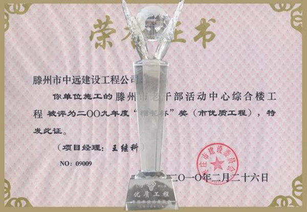 棗莊地區(qū)2009年度建筑工程質(zhì)量評選揭曉,倍受市委、市政府和全市人民關(guān)注的我市老干部活動中心工程,喜捧優(yōu)質(zhì)工程質(zhì)量獎“榴花杯”。這一榮譽不僅是棗莊地區(qū)的最高獎項,也是年度內(nèi)滕州市土建工程的唯一一項殊榮。 該工程由市房管局中遠公司承建,地上八層,地下一層,總建筑面積8000多平方米,是一座功能齊全、設(shè)備完善、環(huán)境優(yōu)美的全新建筑,其規(guī)模檔次居魯南之最。 工程開工以來,市委、市政府領(lǐng)導多次到施工現(xiàn)場視察工程進展狀況,并對工程建設(shè)提出了具體的要求。在施工單位的精心組織管理下,2008年度該工程被評為省級優(yōu)良現(xiàn)場。獲得“榴花杯”榮譽之后,省級“泰山杯”優(yōu)質(zhì)工程的申報也進入了緊鑼密鼓的籌備中。作為中遠公司的重點攻堅項目,開工伊始就確立了誓奪“泰山杯”獎的質(zhì)量目標,制定了16項高于“泰山杯”標準的項目標準,運行施工單位自檢、監(jiān)理單位抽檢、質(zhì)檢單位監(jiān)督的檢查程序,形成了嚴密的質(zhì)量保證體系,為爭創(chuàng) “泰山杯”奠定了堅實的基礎(chǔ)。 而今,拔地而起的老干部活動中心以嶄新的面貌、宏偉的英姿矗立在清河南岸,不僅是我市城市建設(shè)的亮點,也將成為我市尊老愛老彰顯城市文化的標志性工程。