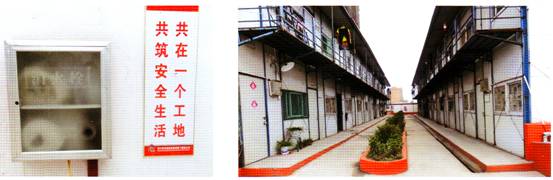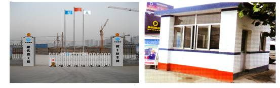 1、大門:施工現(xiàn)場進出口應(yīng)設(shè)置大門,并設(shè)置門衛(wèi)值班室,面積不小于4平方,凈高不低于2.4米;應(yīng)建立門衛(wèi)職守管理制度,配備門衛(wèi)職守人員;應(yīng)有企業(yè)名稱或標志;大門處必須硬化,按要求設(shè)置車輛沖洗設(shè)施、流水槽。  2、現(xiàn)場圍擋:工地四周必須設(shè)置封閉圍墻,主要路段圍墻高2.5米,其它路段圍墻高不低于1.8米,外墻面平整,無破洞,墻腳處無積水、污泥、垃圾和雜草,圍擋墻內(nèi)外保持整潔,禁止依靠圍擋墻堆放物料、器具等;禁止用圍擋墻做擋土、擋水墻或機械設(shè)備等的支撐體;圍擋墻應(yīng)堅固、穩(wěn)定,并進行美化、亮化,反映企業(yè)文化特點。 3、現(xiàn)場硬化和材料堆放:施工現(xiàn)場主要干道及材料加工區(qū)要實行硬化;建筑材料、構(gòu)件、料具應(yīng)合理布局、分類碼放整齊,標明名稱和規(guī)格,并采取防火、防銹、防雨等措施;易燃易爆物品必須有防火、放暴曬等保護措施;建筑物內(nèi)垃圾的外運,應(yīng)采取合理容器或管道運輸,嚴禁凌空拋灑。  4、施工分區(qū):施工現(xiàn)場應(yīng)合理劃分作業(yè)區(qū)、辦公區(qū)和生活區(qū)。建筑物周邊硬化要結(jié)合外架基礎(chǔ)一次成型,并制作排水溝,現(xiàn)場應(yīng)設(shè)置良好的排水系統(tǒng),保持排水暢通,地面無積水;合理設(shè)置沉淀池,嚴禁污水未經(jīng)處理直接排入城市管網(wǎng)或河流。     |