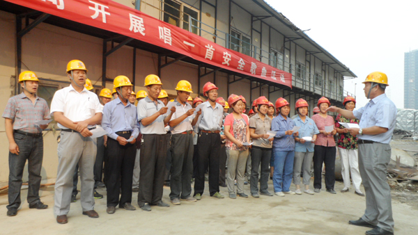 “山高高不過天,地大大不過天,天大的事情叫安全,它和千家萬戶緊相連……”,6月21日一大早,在中遠公司碧水云天·中央城A區(qū)施工現場,整齊嘹亮的《安全為天》歌曲唱出了工人們的心聲。 據悉,6月份是全國安全生產月,建筑行業(yè)作為高危行業(yè),安全生產是建筑施工重中之重。 據該公司相關負責人介紹,為全面提高工人安全防范意識,貫徹落實國家相關安全政策法規(guī),該公司在安全生產月伊始,相關安全負責人就制定了“安全生產月”活動方案。包括制定《中遠公司防汛搶險應急救援預案》;在工地上懸掛安全標語條幅;工地自查自糾安全隱患;對工人利用早點名時間進行安全生產知識培訓。而學唱安全歌曲,作為一項既能促進安全工作有效開展,又能愉悅工人身心的活動,受到了工人們的一致歡迎。