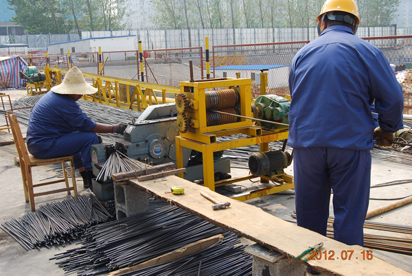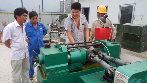近日,中遠(yuǎn)公司投資5萬余元購置了穿墻絲桿生產(chǎn)線設(shè)備一套,包括拔絲機(jī)、滾絲機(jī)、縮經(jīng)機(jī)、切斷機(jī),試運營一個星期,效果良好。 據(jù)了解,該設(shè)備主要用于加工6—40絲桿、絲杠。其工藝流程首先是把12圓鋼用縮徑機(jī)縮小到一定程度,然后用拔絲機(jī)把12圓鋼拉拔到10.6cm,再用切斷機(jī)把已拉長的圓鋼切斷所需長度,用滾絲機(jī)把鋼筋兩頭滾絲。據(jù)該公司設(shè)備科負(fù)責(zé)人介紹,該滾絲機(jī)每天大約可滾4000多個絲桿,滿足公司直營工程項目使用,并可對外加工。所做絲桿質(zhì)量高于市場銷售質(zhì)量。該設(shè)備易于操作,能夠提高人員使用率,并大大降低工程成本,減少公司資金壓力。