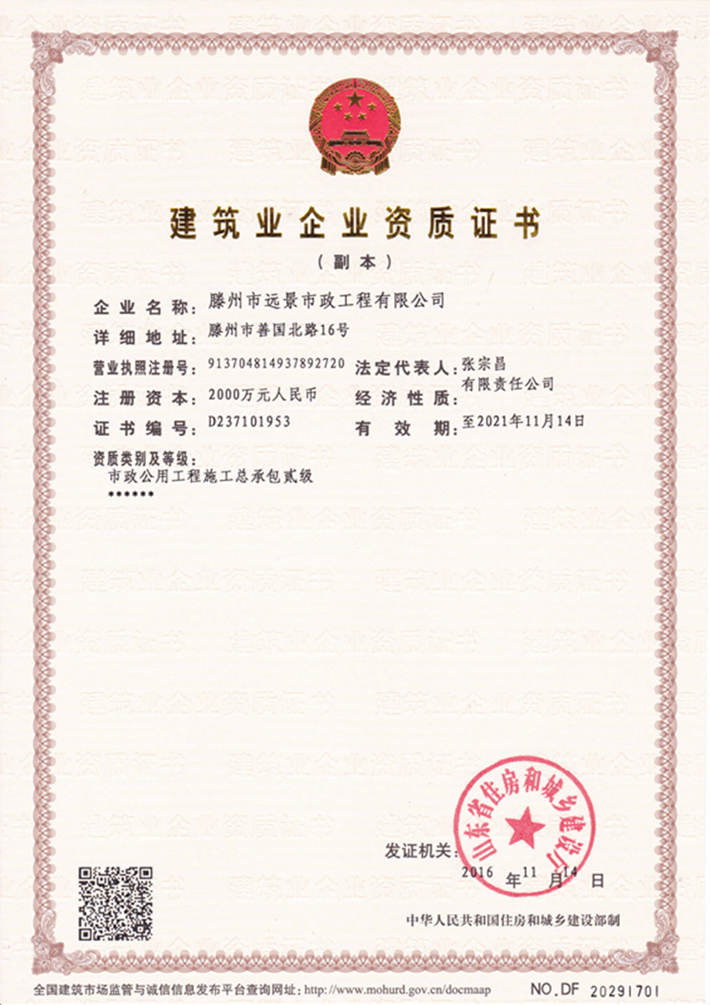 12月1日,滕州市遠(yuǎn)景市政工程有限公司經(jīng)省住房和城鄉(xiāng)建設(shè)廳考核批準(zhǔn),順利成功晉升市政公用工程施工總承包二級(jí)資質(zhì)。  據(jù)了解,遠(yuǎn)景市政工程有限公司成立于2014年4月,公司注冊(cè)資本2000萬元,固定資產(chǎn)近400萬元,是一家國有專業(yè)市政工程公司,主要經(jīng)營市政工程施工、停車場(chǎng)服務(wù)等業(yè)務(wù)。該公司有二級(jí)建造師12人,中級(jí)職稱人員15人,關(guān)鍵崗位人員30人,中級(jí)技術(shù)工人75人。自創(chuàng)辦以來一直專注市政工程施工等方面的業(yè)務(wù),積極把握市場(chǎng)機(jī)遇,充分依靠企業(yè)優(yōu)勢(shì),努力適應(yīng)市場(chǎng)需求,其承建的邾城路、荊河?xùn)|路受到市民一致好評(píng)。 工程施工資質(zhì)由三級(jí)提升為二級(jí),進(jìn)一步提升企業(yè)自身實(shí)力和綜合競爭力,為今后公司承接更多重點(diǎn)工程提供機(jī)遇和保障。對(duì)推動(dòng)該公司的持續(xù)發(fā)展具有重要的意義。 |