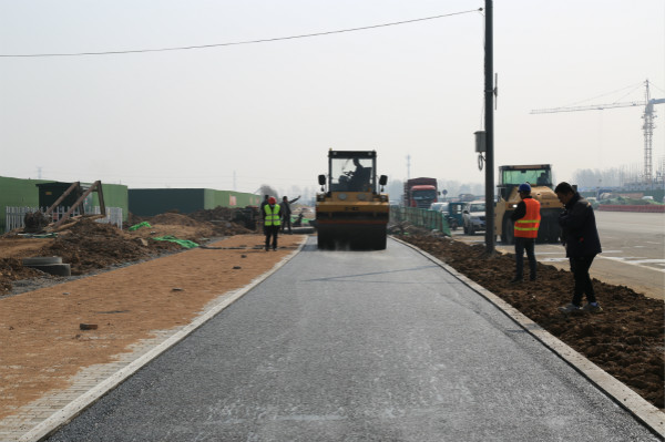 4月3日,由中遠公司承建的同德大道(陳崗段)非機動車道開始鋪設瀝青。此次瀝青鋪設厚度5cm,全長約900m,鋪設完成后將大大提高行車舒適度和市民出行安全感。