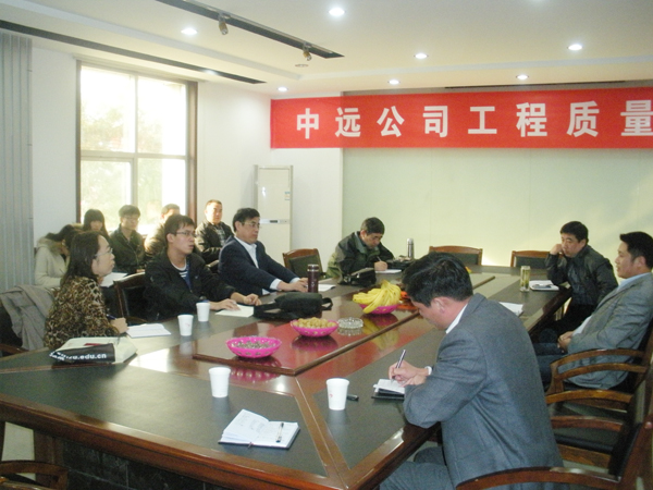 下午,考察組一行就上午考察情況在中遠公司會議室召開了公司管理及工程質(zhì)量交流會。房管局局長劉子舜,中遠、古滕、裝潢公司負責人,各直營項目部負責人、施工技術(shù)人員及中遠公司2012年新分配大學生共同參加了座談。座談主要討論了以下幾方面內(nèi)容:一、公司現(xiàn)行的組織結(jié)構(gòu)、運行機制、激勵措施;二、公司的管理體系是怎樣貫徹質(zhì)量目標的;三、公司關(guān)于工程質(zhì)量的規(guī)章制度等相關(guān)內(nèi)容。相關(guān)負責人匯報了以上方面內(nèi)容,考察組給出了建議及意見。